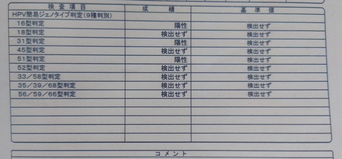 これは、HPV陰性という結果です。この場合、1年ごとの検診を行うことになります。