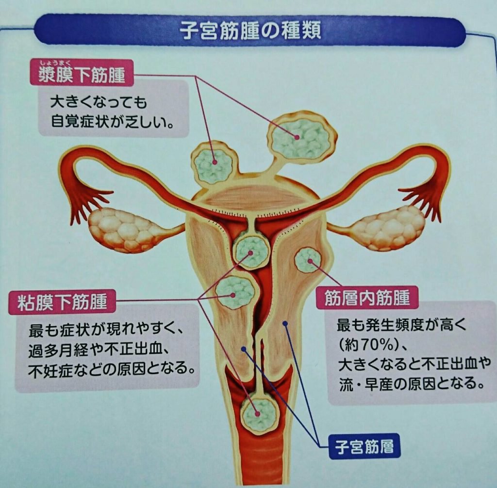 特に、粘膜下筋腫によっては、出血量が多く、月経以外の出血により輸血をしたりする場合もあります。