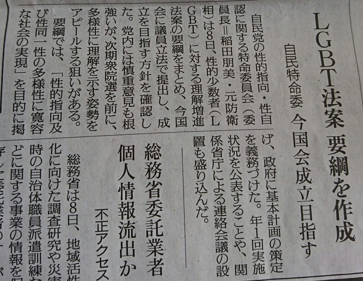 まだまだ「性的指向及び性同一性の多様性に寛容な社会の実現」を目標に掲げただけ。実施されるのはずいぶん先になることでしょう。